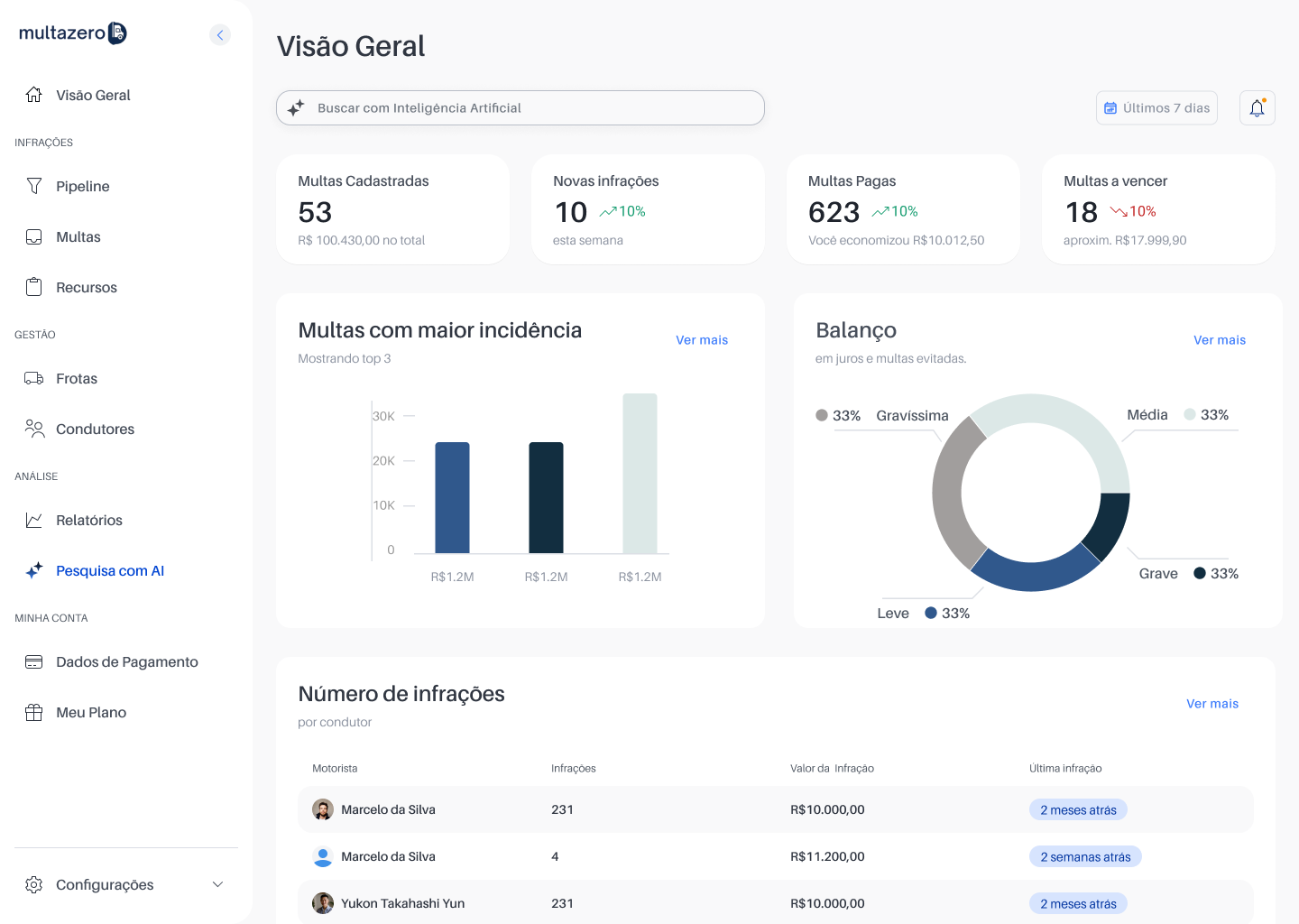 Números que mostram o impacto do MultaZero na gestão de frotas.